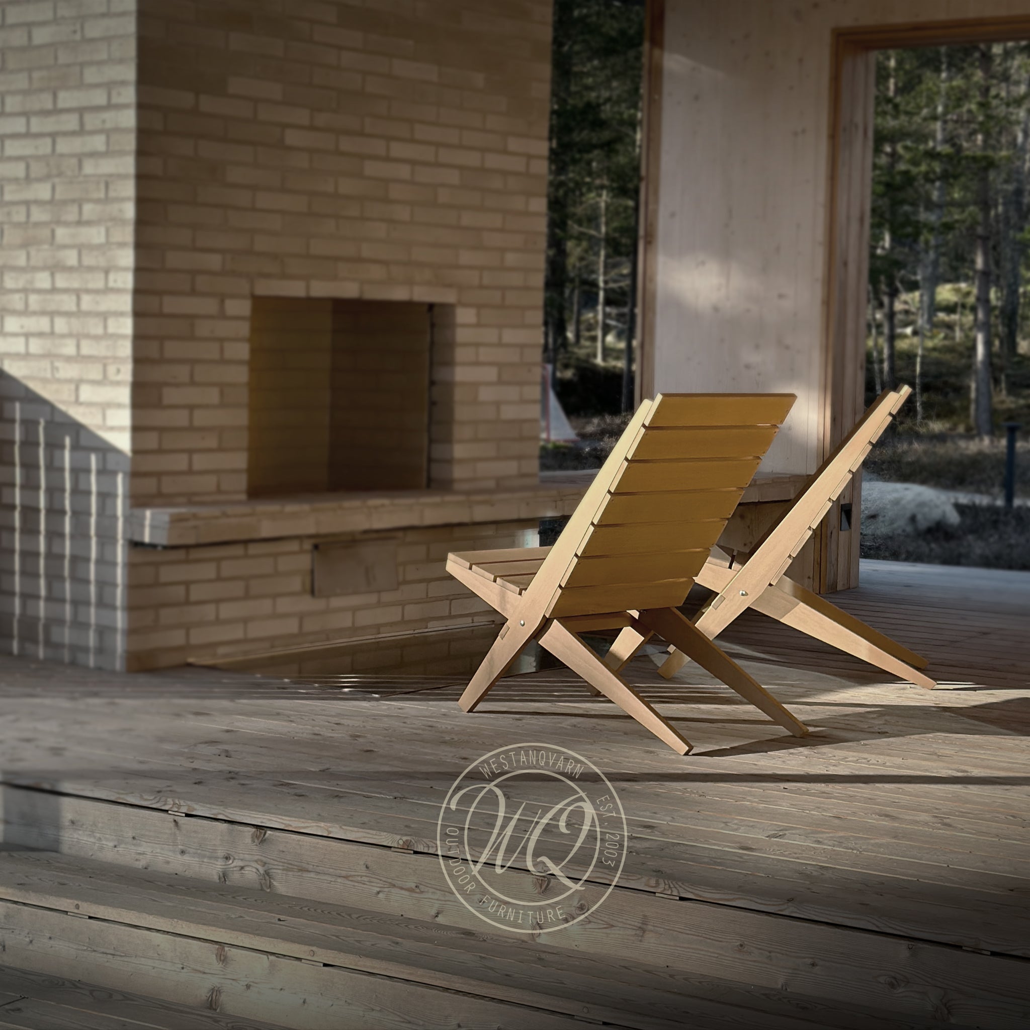 Retro is a timeless high quality outdoor furniture collection with roots in the Scandinavian tradition. Locally crafted of premium twig free Nordic pine and surface treated with sustainable wood oil that breathes, making maintenance easy and allowing the furniture to last for generations. Optimized angles and cushions guarantee high sitting comfort. The foldability facilitates transport and storing. Bolts and screws are made of stainless/A4 steel. Read more of maintenance…